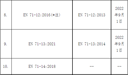 更新涉及EN 71-2、EN 71-3、EN 71-4、EN 71-7、EN 71-12和EN 71-13六项玩具标准。