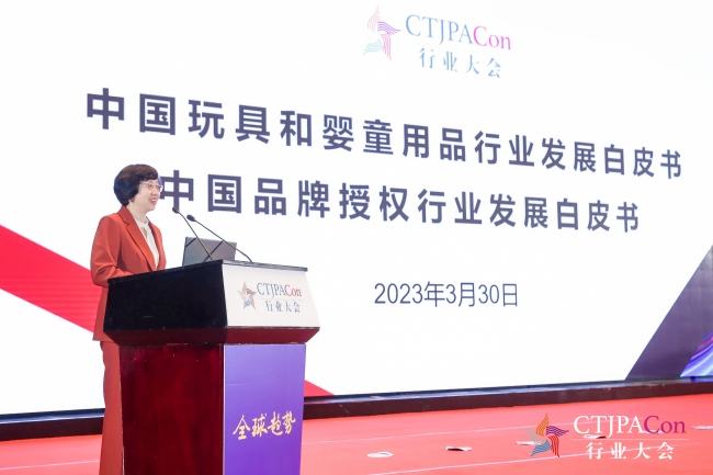 中国玩协会长梁梅在行业大会现场发布《2023中国玩具和婴童用品行业发展白皮书》《2023中国品牌授权行业发展白皮书》对行业发展现状和趋势进行系统阐述和分析。