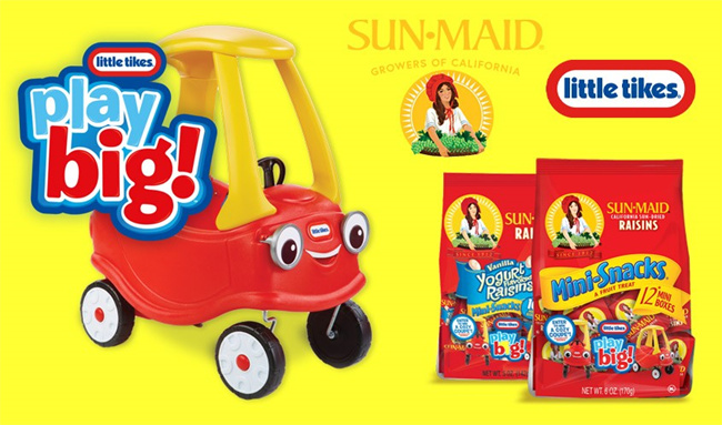 Little Tikes曾与著名的休闲零食品牌SUN·MAID合作推出联名产品,并通过游戏的方式推广其限时促销产品,并为消费者提供奖品,包括Little Tikes Cozy Coupe汽车、礼品卡等。