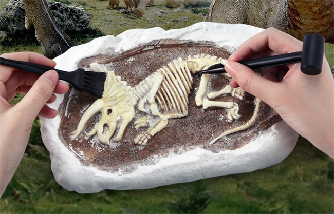 从天猫平台销售数据来看,考古挖掘类玩具的热度居高不下,恐龙化石、矿石等都畅销主题,儿童借助所提供的工具,将被包裹的内容挖掘出来,其过程模拟了科学考古发掘的过程,同时也带给儿童寻宝的期待感和刺激感,大大提升了儿童的兴趣,锻炼儿童专注力。在挖掘完成后,还可进行恐龙骨骼化石拼装、矿石认知等,拓展玩法的同时丰富了儿童对科学知识的了解。
