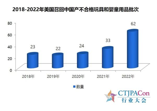 美国CPSC通报召回62批次中国大陆产不合格玩具和婴童用品,比上年增长87.9%。