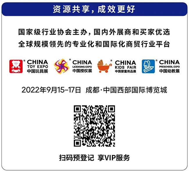 引言:2022年9月15日至17日,由中国玩具和婴童用品协会(简称中国玩协)主办的CTE中国玩具展、CLE中国授权展、CKE中国婴童用品展、CPE中国幼教展(简称中国玩协主办四展)将在四川省成都市中国西部国际博览城举办,四展同台,共享跨界资源,引领创新趋势。