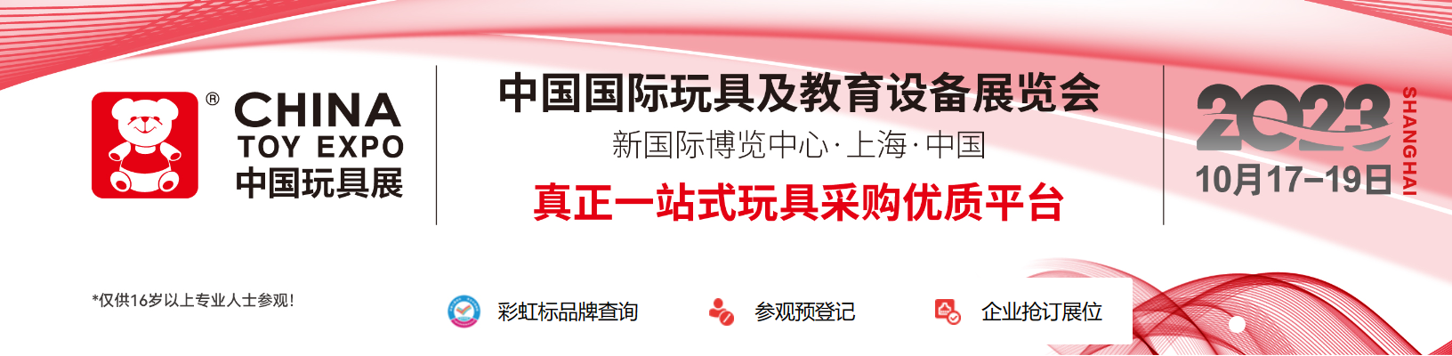 作为亚洲规模最大玩具类展会,展示品类覆盖十七大类玩具,以及原材料、包装设备、技术服务、设计服务等全产业链,是众多国际品牌进入中国市场唯一选择的展会,更得到广东东莞、深圳、澄海、浙江云和、永嘉、宁波、平湖、山东青岛、临沂、江苏宝应、福建泉州、陕西安康、浙江义乌、河北白沟等国内20大产区地方政府与协会的高度认可,产区优质外销型龙头企业和工厂悉数亮相。